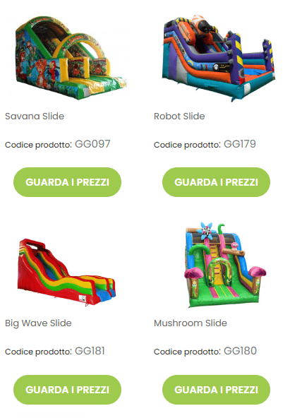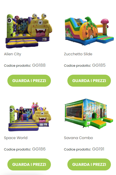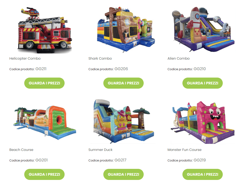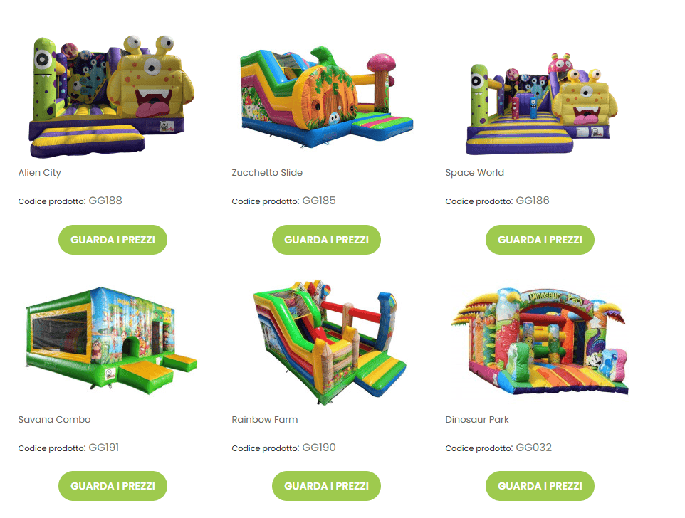I nostri giochi gonfiabili sono progettati per trasformare ogni area gioco in un’esperienza coinvolgente, sicura e ad alto impatto visivo.
